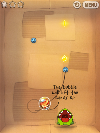 Si bien los primeros niveles son bastante fáciles, tendrás que usar todo tu ingenio para lograr las mejores combinaciones y, de paso, hacer feliz a Om Nom.